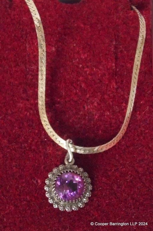 Charles Horner Silver Amethyst Pendant Necklace