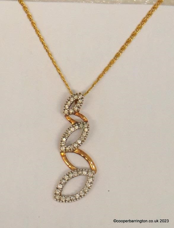 9ct Yellow Gold Diamond Pendant Necklace on 15 3/4 inch Chain Marked .750. Boxed.