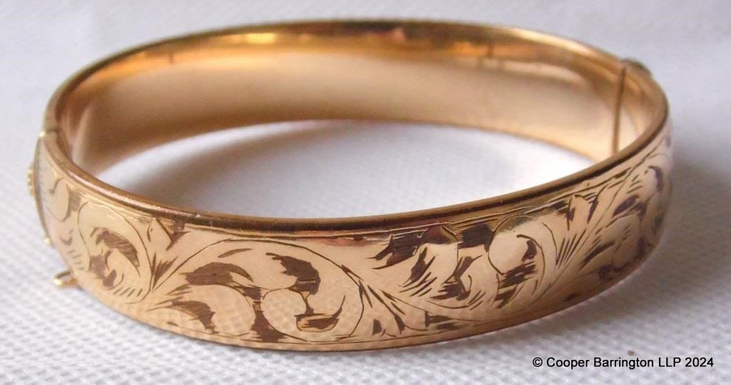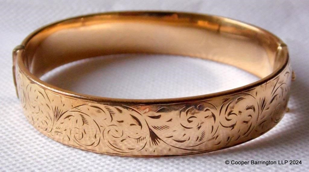 Vintage 9ct Gold Engraved metal Core Bangle. Marked...