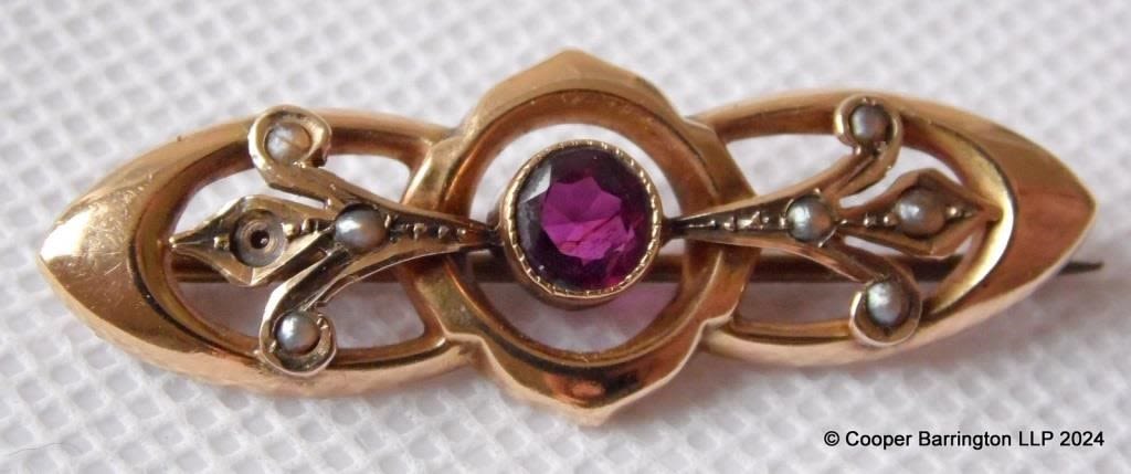 Victorian 9ct Amethyst/Seed Pearl Brooch
