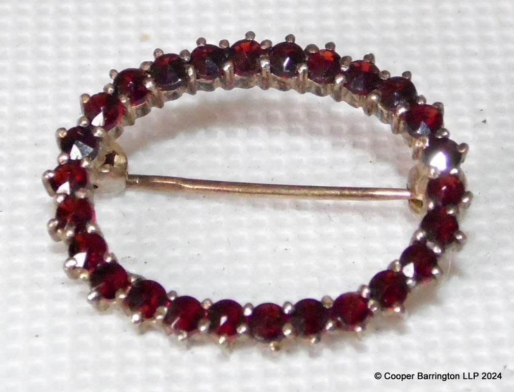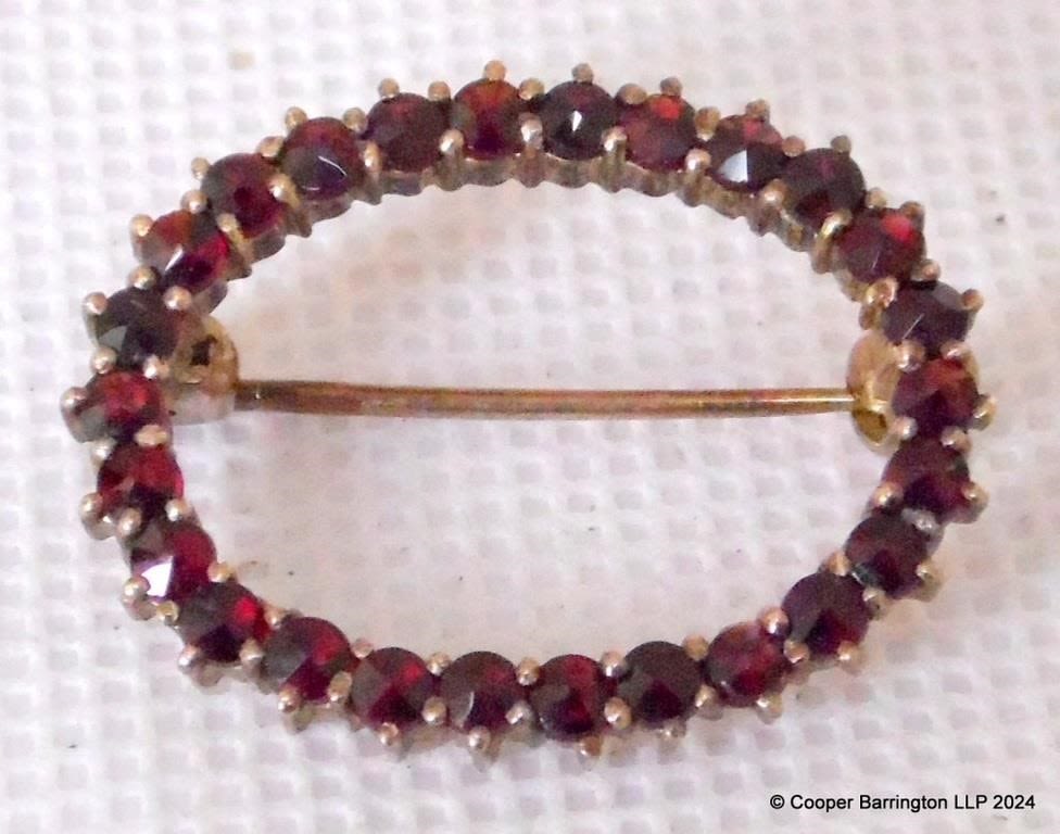 21ct Yellow Gold Oval Brooch Mounted with Garnets. Marked G900