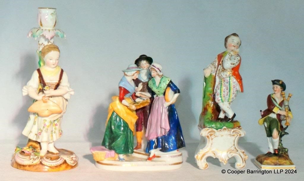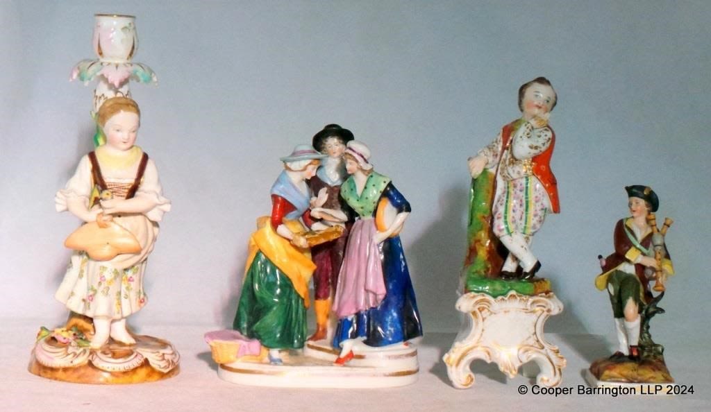 Antique Collection of Continental Figurines. 19th Century. All with repairs. (4 Items)