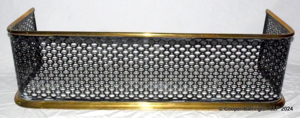 Antique Brass and Steel Mesh Fire Guard. Early 1900. Height 10.5 in. Width 35.5 in. Depth 11 in.