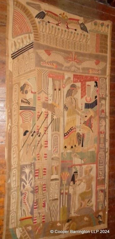 Large Art Deco Egyptian Theme Cotton Embroidered Hoizontal Wall Hanging. 285 cm. x 137 cm.