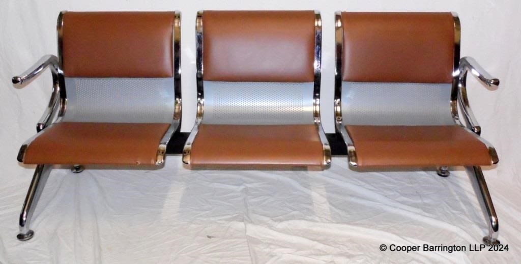 Chrome and Leathercloth Three Seat Bench. Height 30 in. Width 69 in. Depth 22 inches.