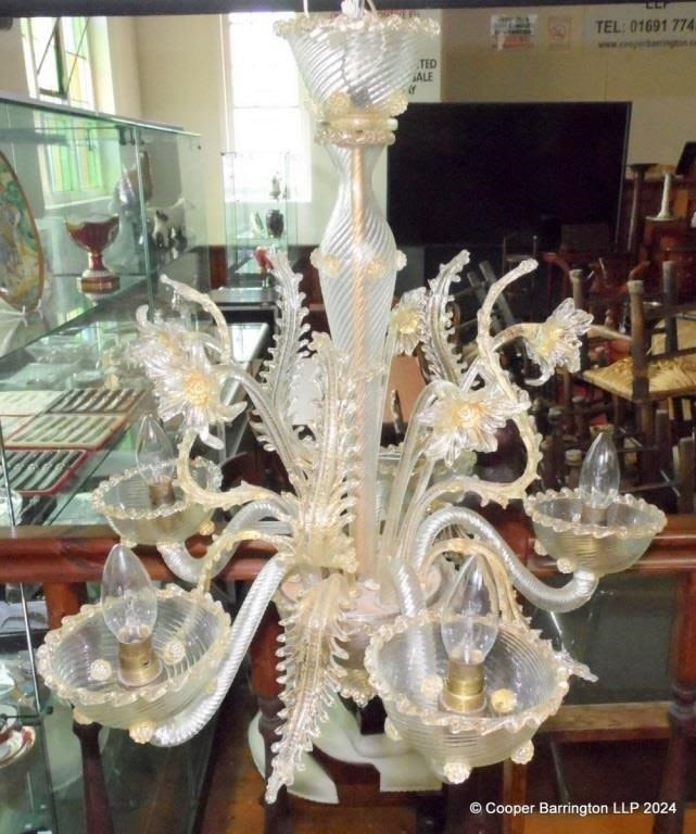 Classique Old Murano Floral Five Branch Chandelier Handmade....