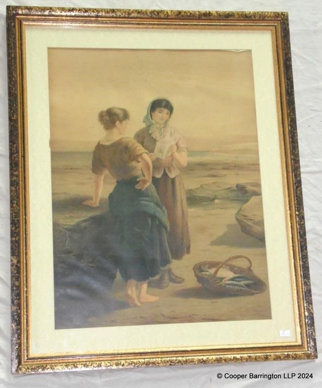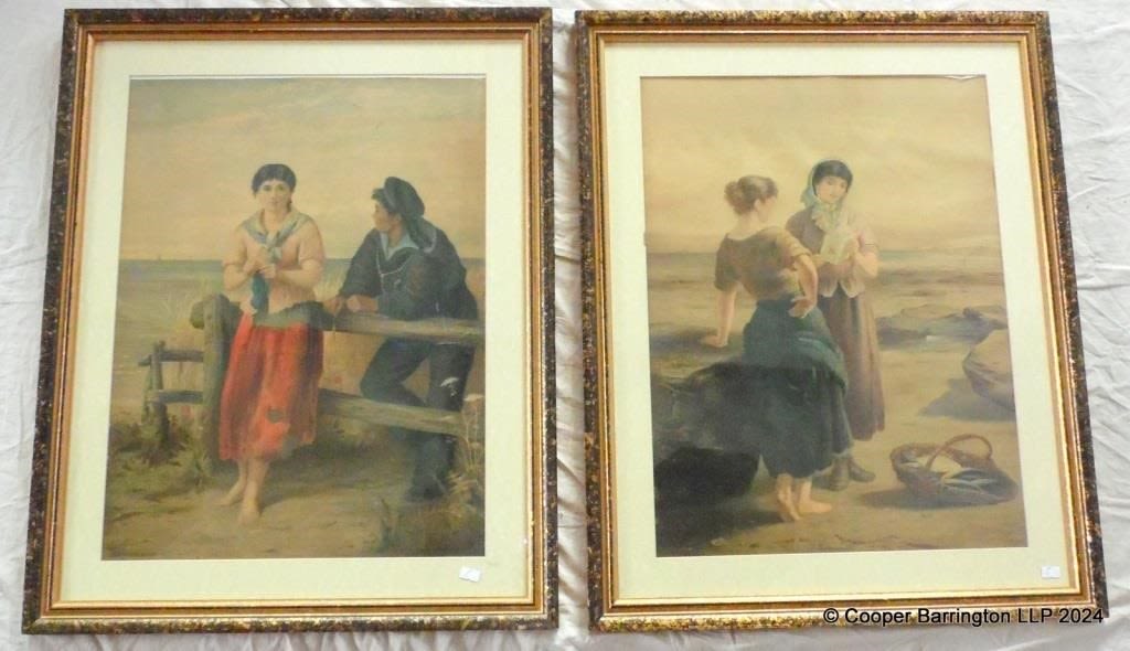 Drummond. Coloured Lithographs Fisherfolk on the Beach and Going to Sea. Framed under glass 76 x 61 cm. (2 items)