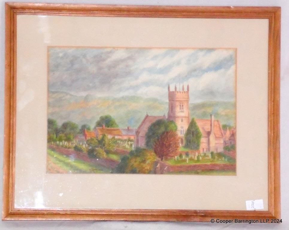 A Lumby Village Church Landscape Watercolour Painting. Circa 1902. Signed A Lumby 1902 lower left. Framed under glass 35 x 28 cm.